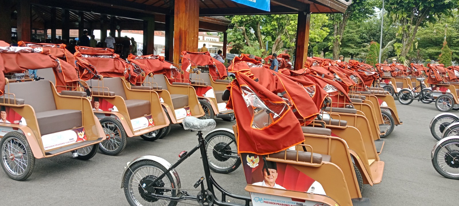 Sebanyak 100 becak listrik yang diberikan kepada para pengemudi becak di Banjarnegara ini merupakan bagian dari program becak listrik bantuan Presiden Prabowo Subianto, khusus untuk Banjarnegara yang disalurkan melalui Yayasan Gerakan Solidaritas Nasional (GSN).