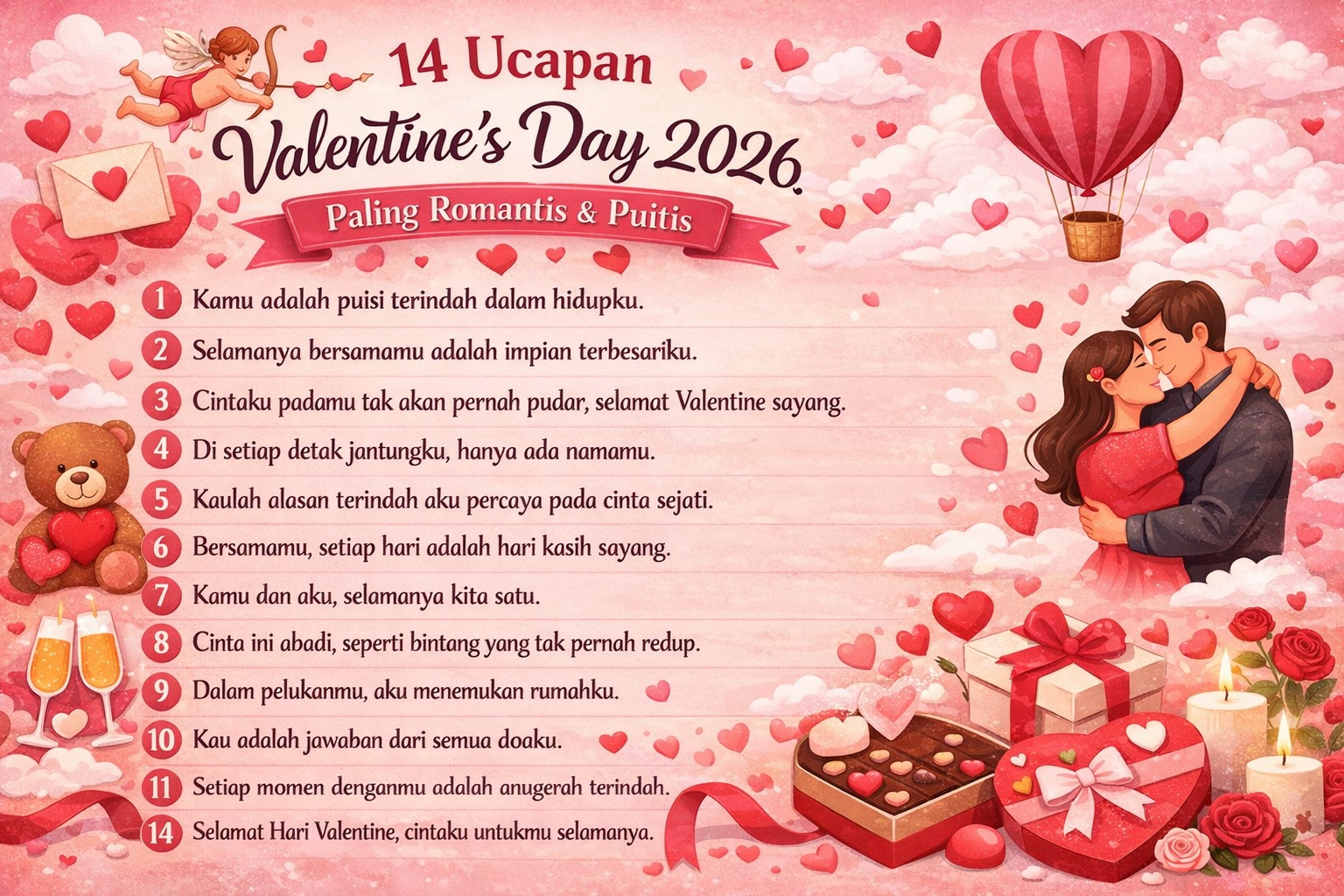 Valentine 2026 bukan hanya soal hadiah mahal, tetapi tentang ketulusan dalam menyampaikan rasa. Kata-kata puitis yang lahir dari hati mampu menciptakan kenangan yang lebih abadi dibanding benda apa pun.