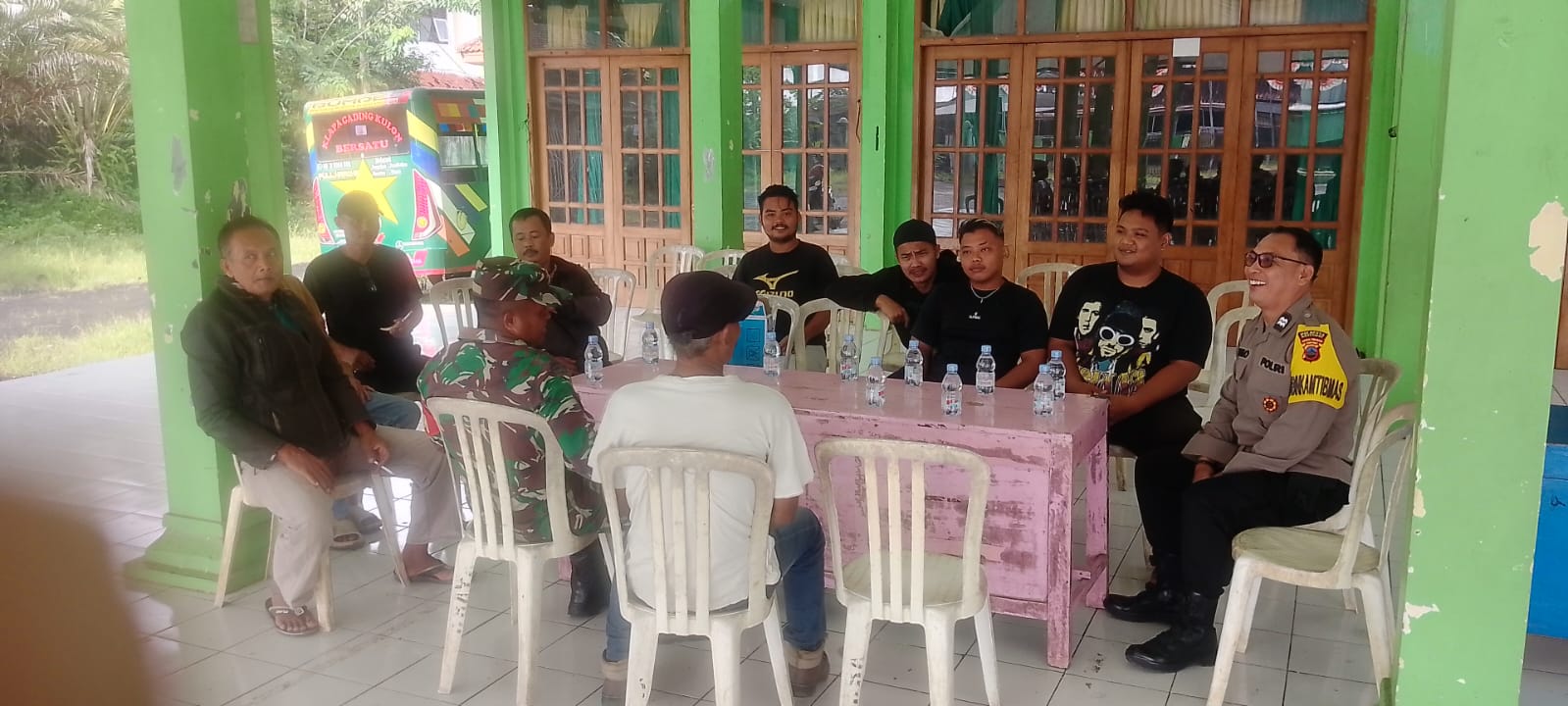 Situasi di sekitar Kantor Desa Klapagading Kulon pada Senin pagi tampak berbeda dari biasanya. Aparat keamanan dari Polsek dan Koramil Wangon terlihat berjaga di lokasi untuk mengantisipasi potensi gangguan keamanan dan ketertiban masyarakat.