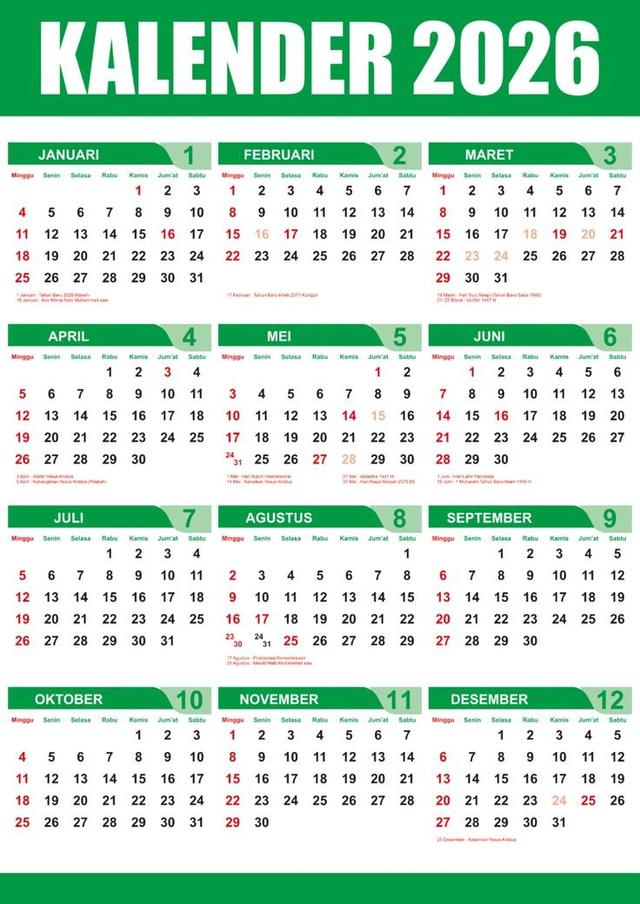 Libur Isra Mikraj 2026 Jatuh 16 Januari, Ini Daftar Tanggal Merah dan Akhir Pekan di Bulan Januari
