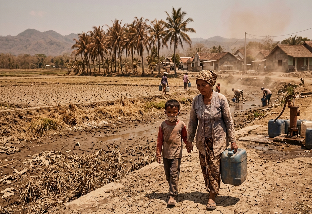 Krisis Air Bersih: Penurunan curah hujan menyebabkan cadangan air di waduk dan sumur warga menyusut signifikan.