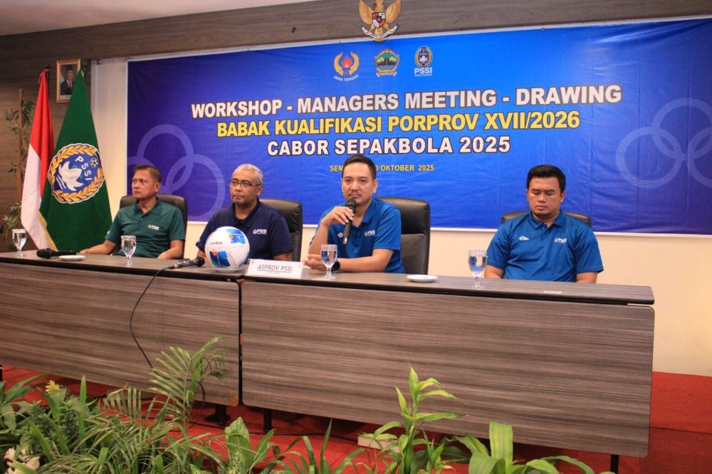 “Babak kualifikasi akan mencari enam tim lagi. Kabupaten Kudus dan Kota Semarang sudah dipastikan lolos karena berstatus juara bertahan (Porprov XVI) dan tuan rumah,” lanjut Yoyok Sukawi saat membuka Managers Meeting, Workshop dan Drawing babak kualifikasi cabor sepakbola Porprov XVII di Semarang, Senin (13/10/2025).