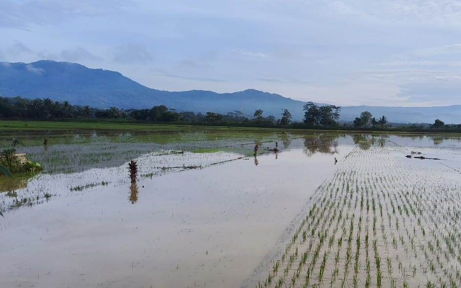 Menurutnya, sekitar 530 hektare sawah terendam. Tanaman padi di wilayah ini sebagian besar berumur 7–14 hari setelah tanam, bahkan ada yang masih di tahap pesemaian sehingga rentan mati. “Kalau ini berlarut tanpa surut-surut, ya kemungkinan besar pertanamannya menjadi mati,” tegasnya.