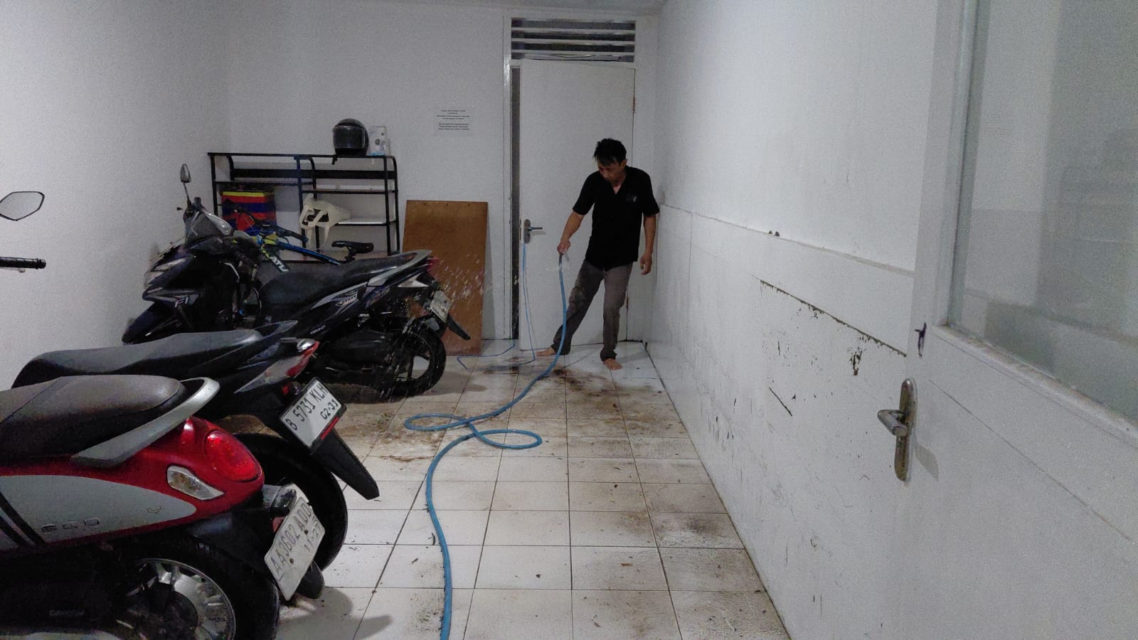 “Waktu itu pintu tidak bisa dibuka karena tertahan air. Motor-motor anak kos juga sempat terendam,” katanya.