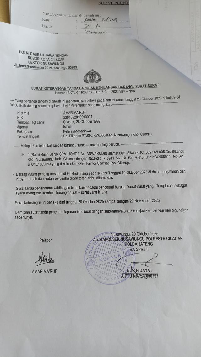 Berita Kehilangan STNK Spm Honda Tahun 2012