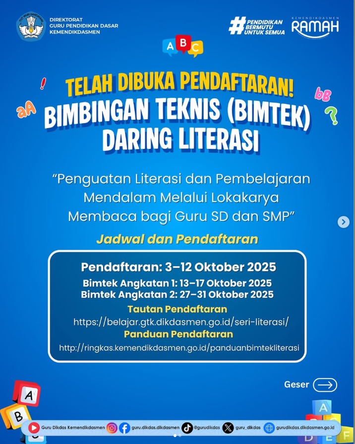 ⦁ Panduan: ringkas.kemendikdasmen.go.id/panduanbimtekliterasi