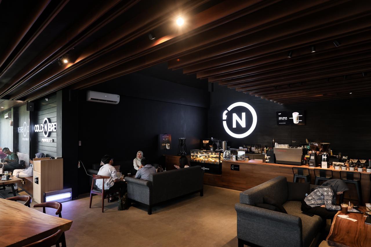 Mengusung desain industrial-modern, Cold ‘N Brew PCC memadukan suasana nyaman dengan konsep semi co-working space.