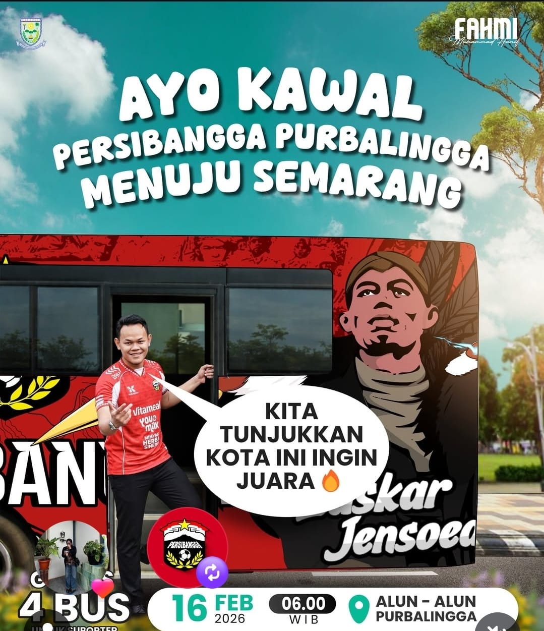 SERAYUNEWS-Bupati Purbalingga Fahmi Muhammad Hanif mengajak supporter Persibangga mengawal perjalanan tim kesayangannya di babak final Liga 4 Jateng 2025/2026. Persibangga akan ditantang Persak Kebumen di Stadion Jatidiri, Senin (16/2/2026).