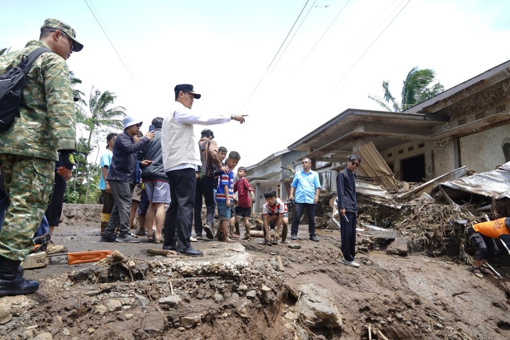 “Banjir bandang membawa banyak material, mulai dari batu, kayu, pohon, lumpur yang berasal dari area hutan (pegunungan, red),” kata Bupati Fahmi.