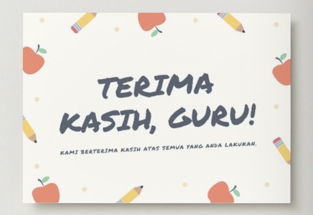 Kartu dapat menyampaikan rasa hormat, terima kasih, atau bahkan doa dan harapan untuk guru.