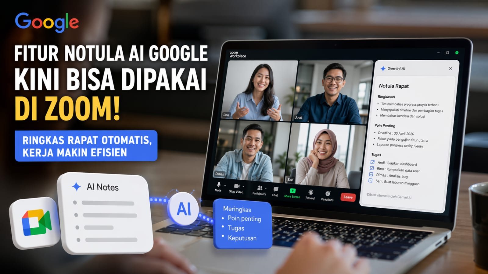 Fitur notula berbasis AI yang dikembangkan Google merupakan bagian dari ekosistem kecerdasan buatan bernama Gemini. Teknologi ini dirancang untuk membantu pengguna dalam berbagai aktivitas produktivitas, termasuk mencatat, merangkum, hingga mengolah informasi dari percakapan.