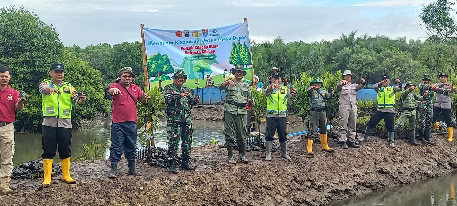 Sebanyak 300 bibit mangrove ditanam secara gotong royong oleh personel Polsek Cilacap Utara, anggota TNI, aparatur Kecamatan Cilacap Utara, serta jajaran Perhutani. Kegiatan ini diawali dengan apel pelaksanaan yang dipimpin langsung oleh Kapolsek Cilacap Utara, AKP Setiyo Nugroho, sebelum seluruh peserta turun ke lokasi penanaman.
