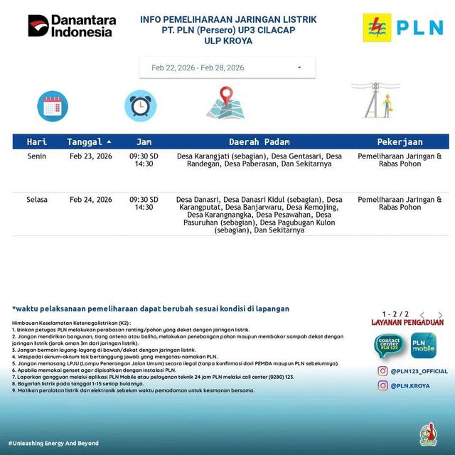 Dikutip dari Instagram PLN ULP Banjarnegara, berikut perincian pemadaman listrik pada 3 sampai 7 November 2925.