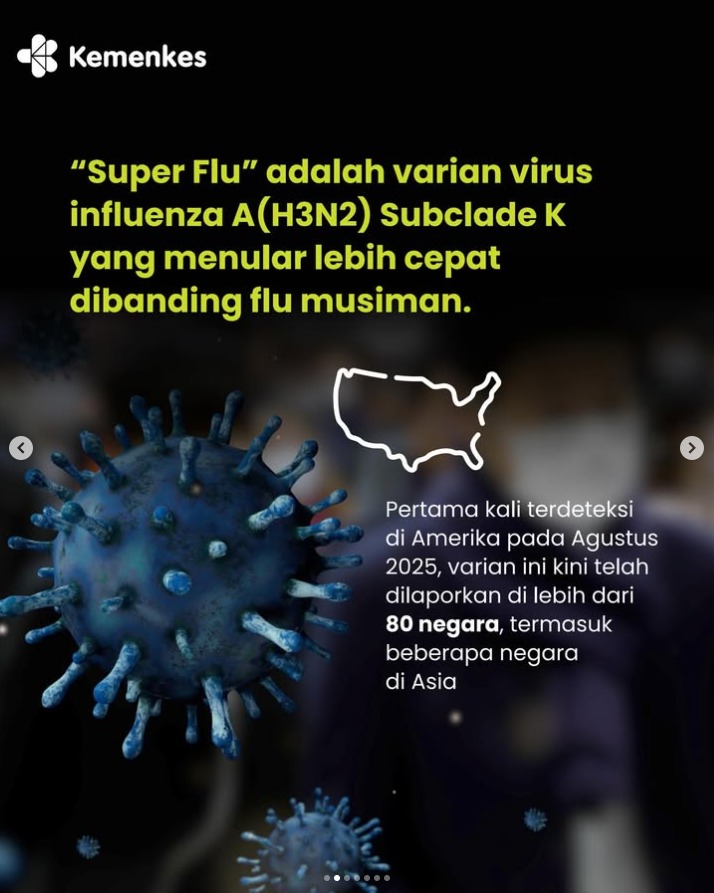 Super flu yang ramai diperbincangkan sejatinya adalah influenza musiman dominan, bukan virus baru. Meski penyebarannya cepat, kondisi ini masih dapat dikendalikan melalui pencegahan sederhana, edukasi publik, dan dukungan riset ilmiah.