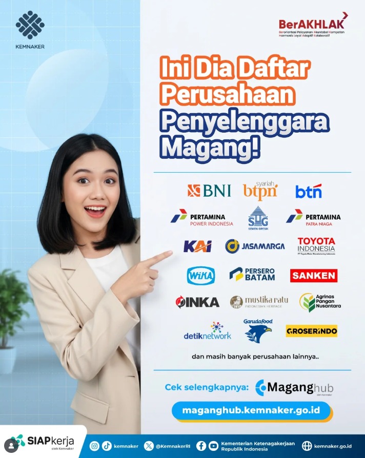 Daftar lengkap perusahaan mitra dapat dicek langsung melalui laman resmi Magang Hub Kemnaker.