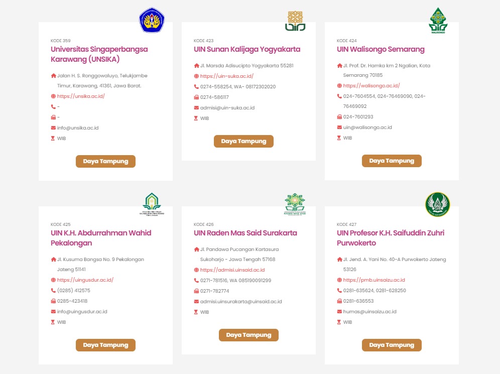 Dengan mengakses menu “Daya Tampung”, peserta bisa melihat jumlah kursi yang tersedia di masing-masing kampus dan program studi.
