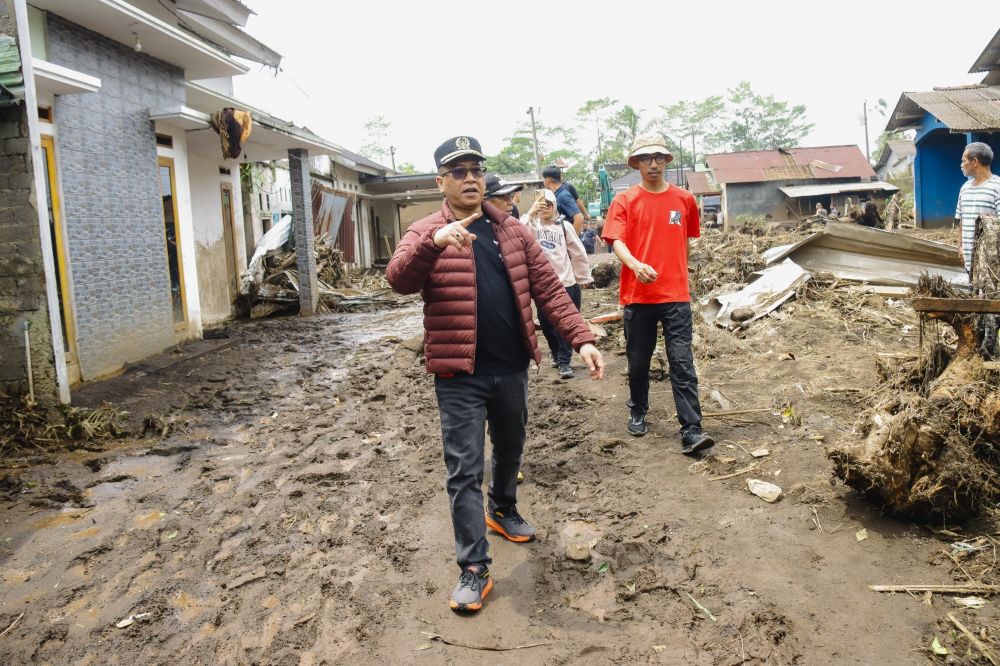 Peninjauan dimulai dari Posko Pengungsian Desa Sangkanayu di kawasan Sangkanayu Hills. Berdasarkan data sementara, sebanyak 16 warga mengungsi di posko, sementara 89 jiwa lainnya mengungsi secara mandiri ke rumah sanak saudara dan tetangga. Pihaknya juga berdialog langsung dengan warga untuk mendengarkan keluhan serta kebutuhan mendesak para korban.