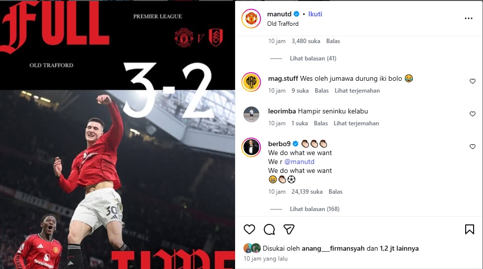 Saat pertandingan seolah berakhir imbang, Manchester United menunjukkan mental juara. Beberapa menit berselang, Benjamin Sesko muncul sebagai penentu kemenangan.
