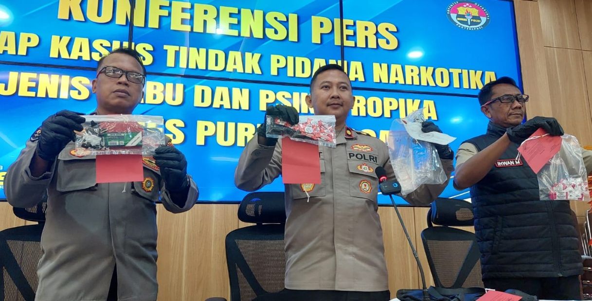 Wakapolres Purbalingga Agus Amjat Purnomo, didampingi Kasat Reserse Narkoba Ikwan Maaruf dan Plt Kasi Humas Dwi Arto, dalam konferensi pers Jumat (20/2/2026) mengatakan, tersangka berinisial JP (23) ditangkap di SPBU Pertamina Padamara, Sabtu 24 Januari 2026.
