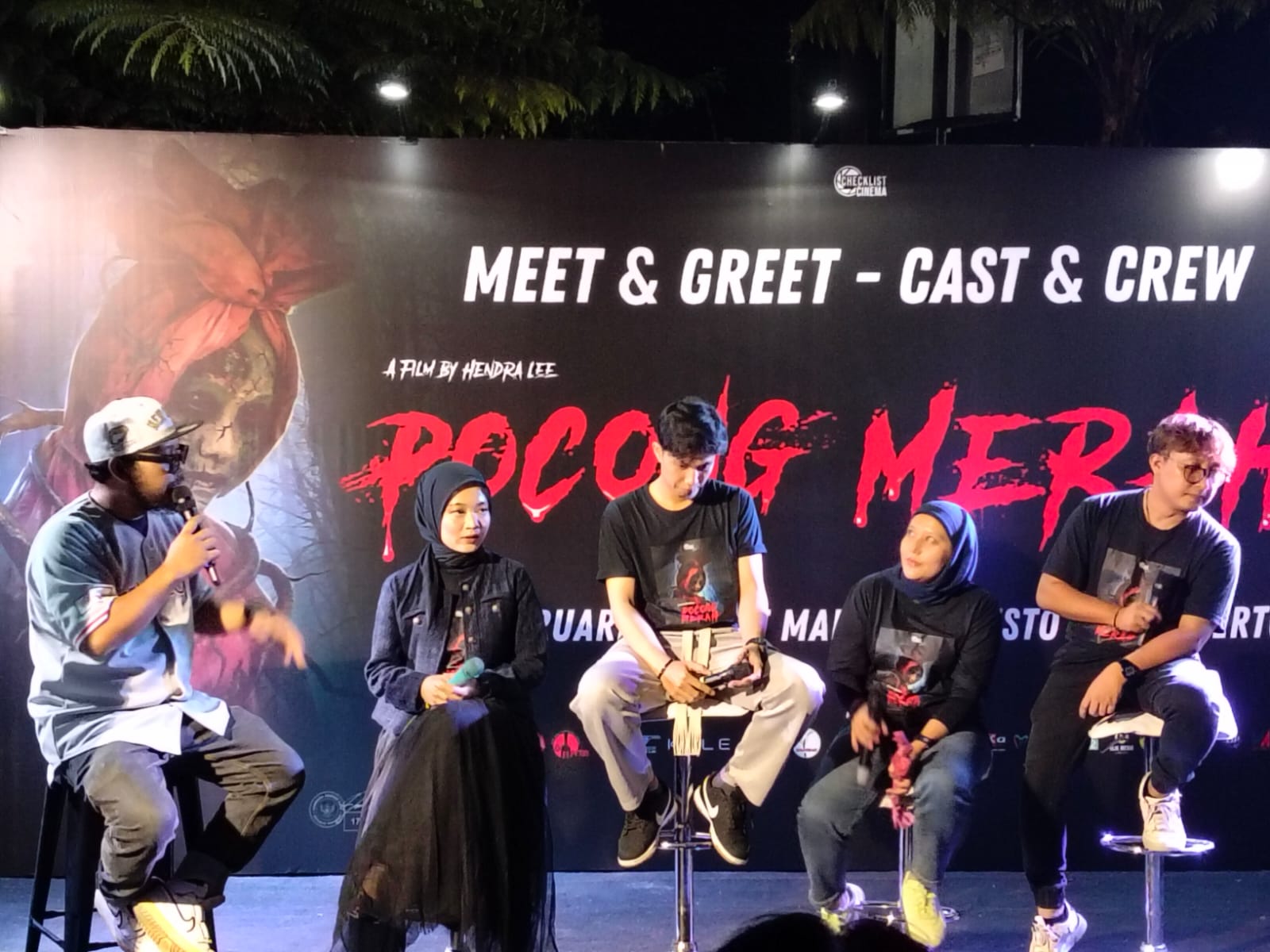 Pada acara meet and great dihadirkan sederet pemain yang menggawangi film ini. Adapun nama-nama yang terlibat dalam produksi Pocong Merah di antaranya adalah Adinda Halona, Ahmad Pule, Yogi Werner, dan Putri Nabilla Aurora.