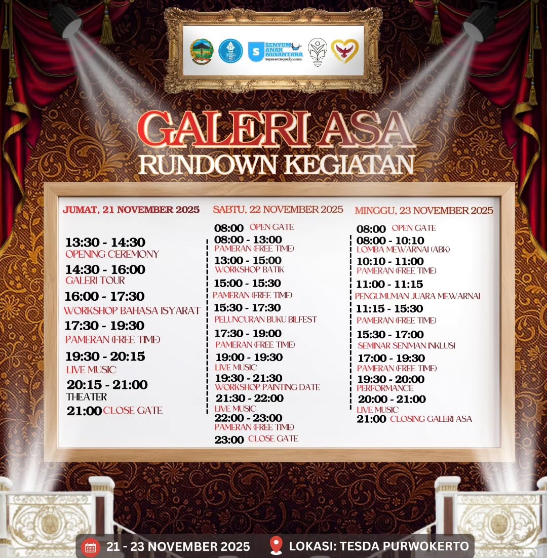 SERAYUNEWS – Program Relawan Generasi Cerdas Season 2 Tahun 2025 akan mencapai puncaknya lewat Galeri Asa, sebuah pameran seni yang tidak hanya menampilkan karya kreatif, tetapi juga menggalang dana bagi anak berkebutuhan khusus (ABK).