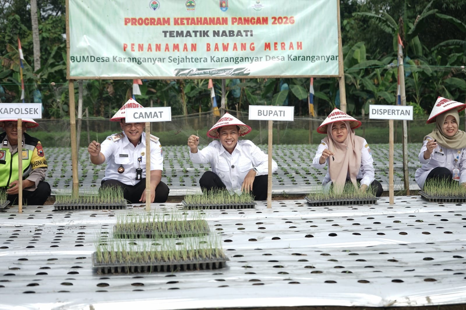 SERAYUNEWS – Bupati Cilacap, Syamsul Auliya Rachman, menargetkan Desa Karanganyar, Kecamatan Adipala, naik kelas menjadi sentra produksi sayuran untuk memenuhi kebutuhan masyarakat Kabupaten Cilacap, termasuk potensi bawang merah. Hal itu disampaikannya saat menghadiri penanaman bawang merah yang diinisiasi Bumdes Karanganyar Sejahtera, Rabu (18/2/2026).