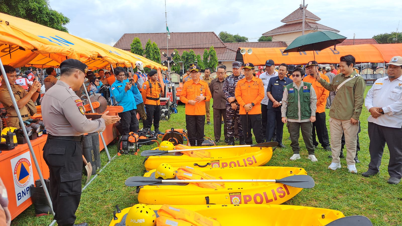 Dalam kegiatan tersebut, ratusan pasukan menampilkan kesiapan penuh, mulai dari perahu karet, kendaraan taktis, alat komunikasi, hingga perlengkapan evakuasi dan logistik darurat.