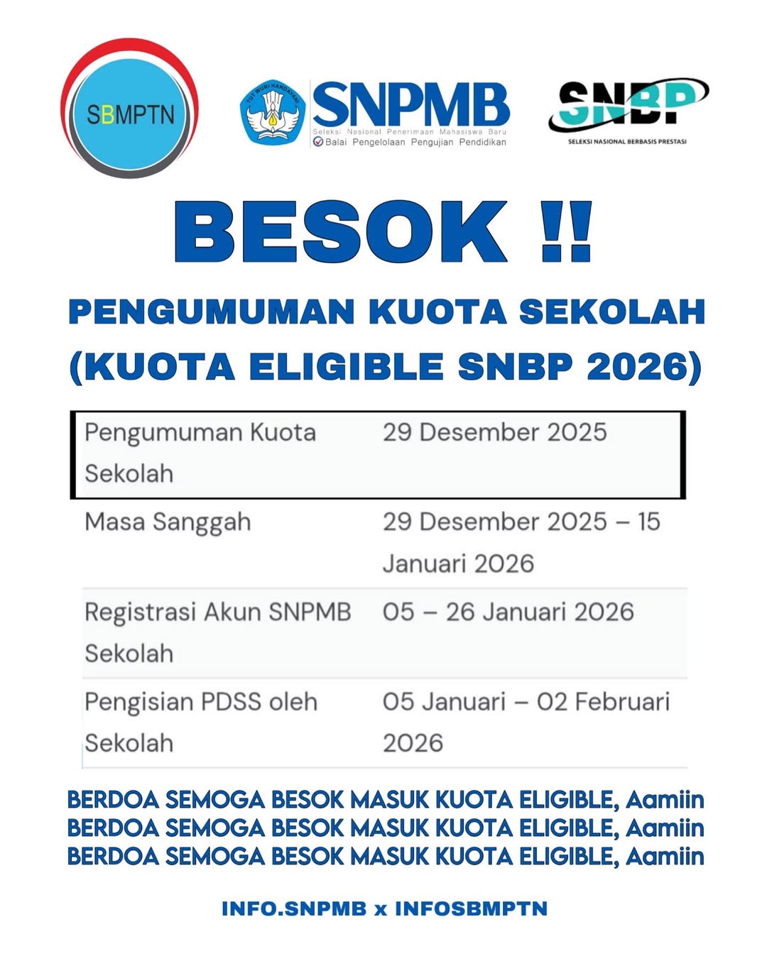 2. Masa sanggah kuota: 29 Desember 2025 – 15 Januari 2026