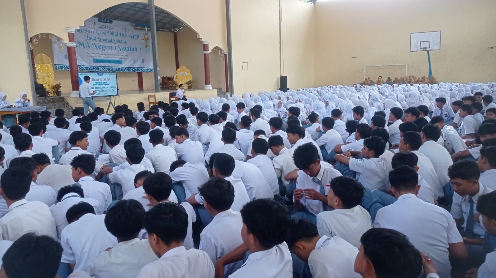 SERAYUNEWS-Suasana hangat dan penuh kebersamaan menyelimuti kegiatan halalbihalal yang digelar SMAN 1 Sigaluh pada hari pertama masuk sekolah usai libur Lebaran. Kegiatan yang dilangsungkan di GOR Sekolah, Senin (30/3/2026) ini diikuti oleh seluruh warga sekolah sebagai momentum mempererat tali silaturahmi setelah Hari Raya Idulfitri.