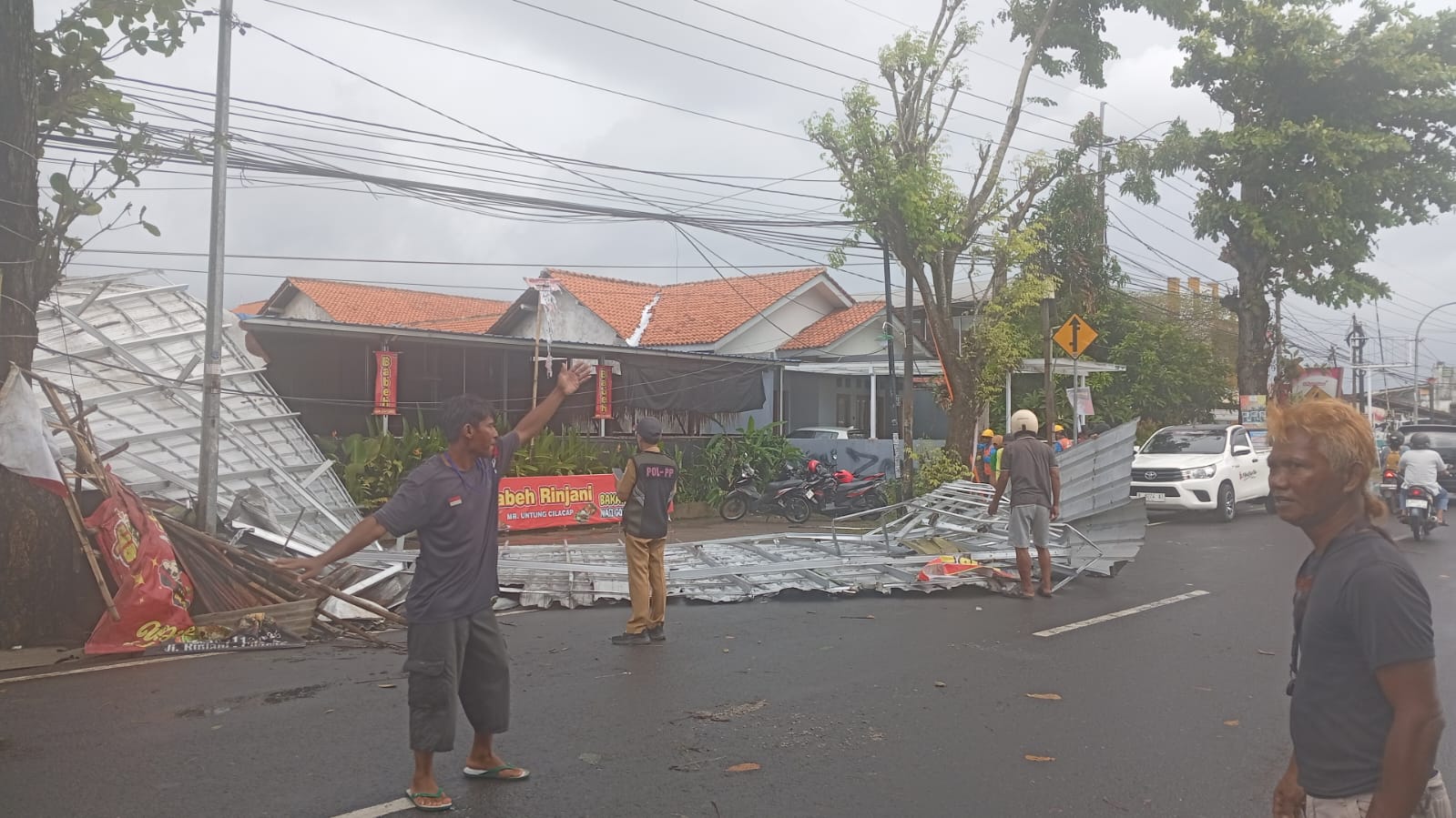 Salah satu kejadian terjadi di Jalan Rinjani, Cilacap. Atap sebuah rumah makan terlepas akibat terpaan angin kencang dan terhempas hingga menutup sebagian badan jalan.