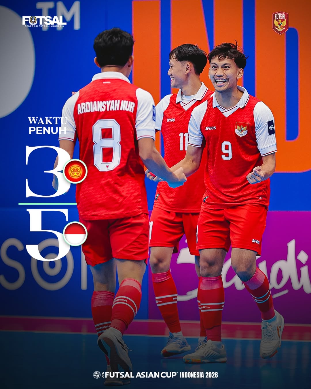SERAYUNEWS-Indonesia sudah memastikan lolos ke babak perempatfinal Piala Asia Futsal 2026. Hal itu terjadi setelah Indonesia memenangkan dua pertandingan. Enam poin yang didapat sudah memastikan Indonesia masuk dua besar klasemen akhir grup A dan lolos ke perempatfinal.