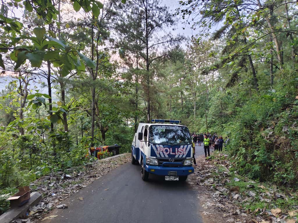 “Sesampainya di lokasi kejadian yang merupakan jalan menanjak dan menikung ke kiri, kendaraan odong-odong tidak kuat menanjak sehingga berjalan mundur dan masuk ke jurang sedalam tiga meter yang terletak di sisi timur jalan,” kata Kasat Lantas, Kamis (16/10/2025).