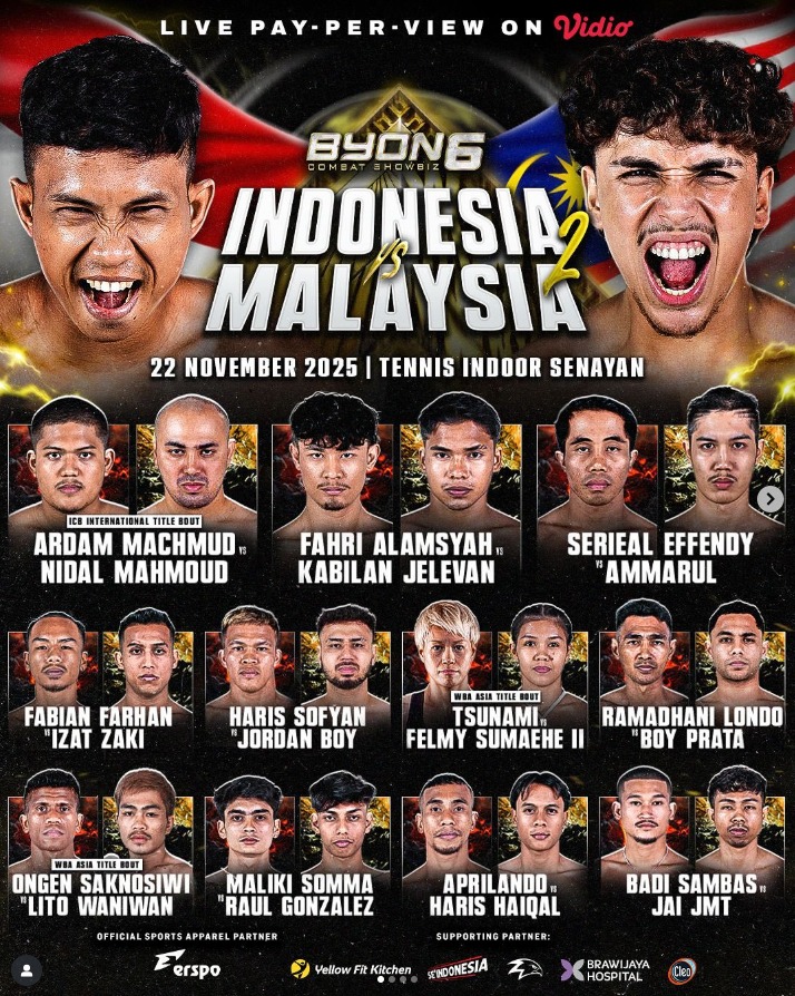 SERAYUNEWS- Ajang combat sports paling panas di Indonesia, BYON Combat Showbiz Vol.6, bakal kembali mengguncang panggung duel Tanah Air pada Sabtu, 22 November 2025.
