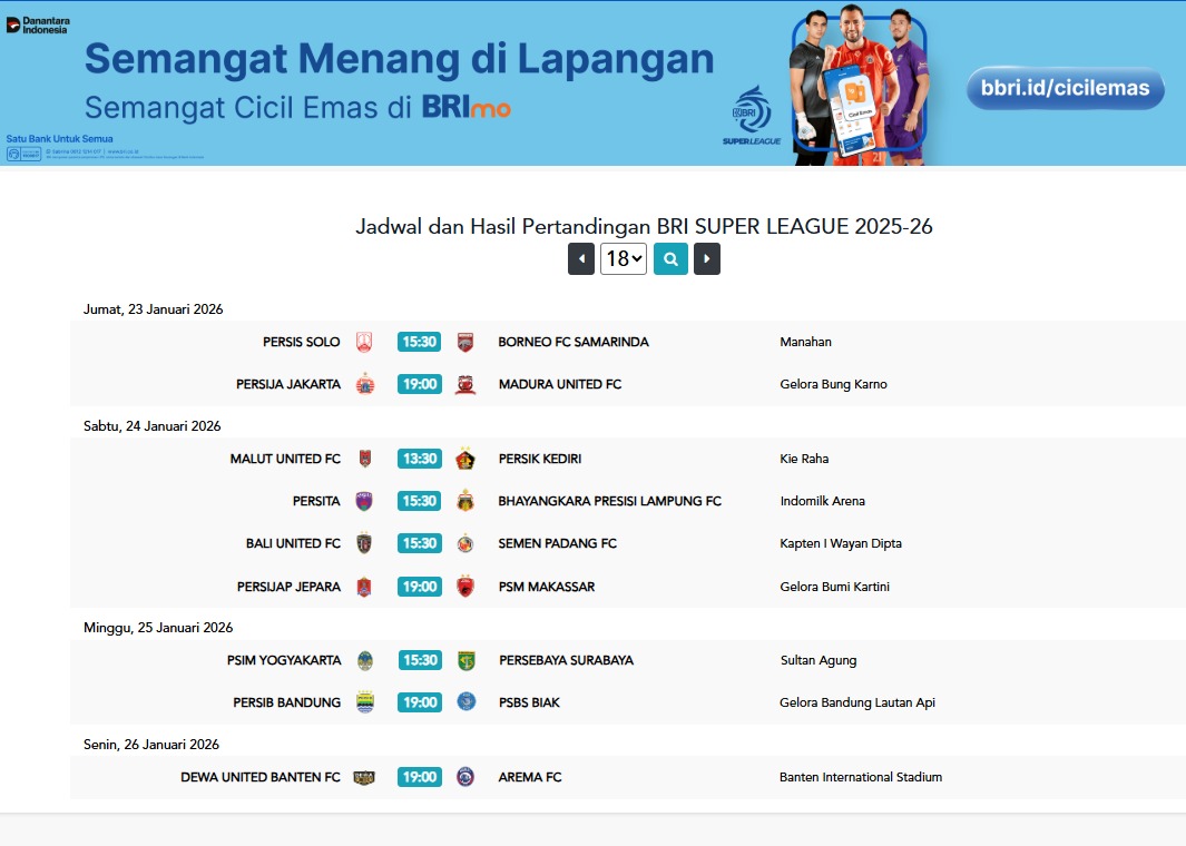 Pekan ke-18 menjadi fase penting dalam perjalanan Liga 1 Indonesia atau BRI Super League 2025-26.
