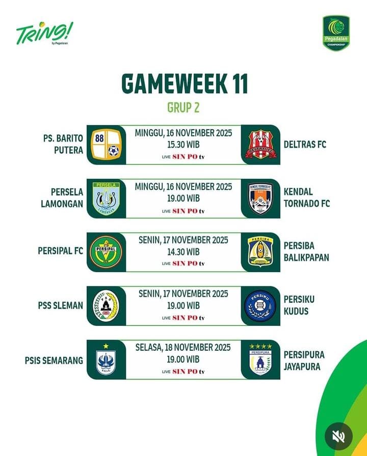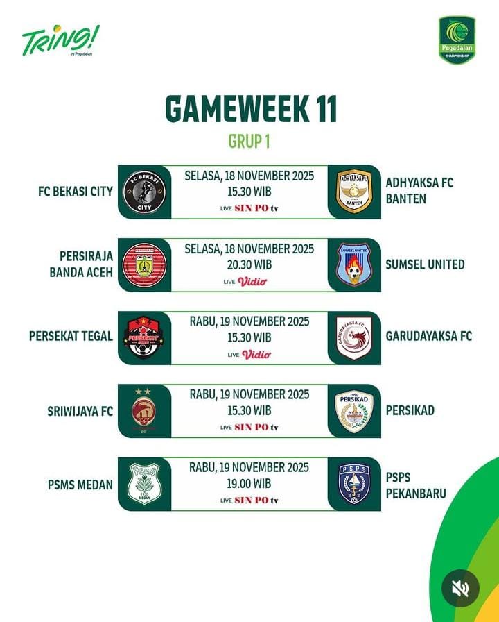 Pekan ke-11 dibuka dengan dua duel panas dari Grup 2 (Grup Timur) pada Minggu (16 November 2025).