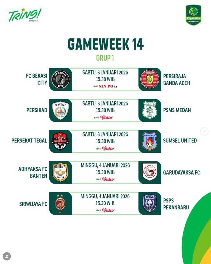 SERAYUNEWS- Kompetisi Pegadaian Championship 2025–26 atau Liga 2 memasuki fase krusial.