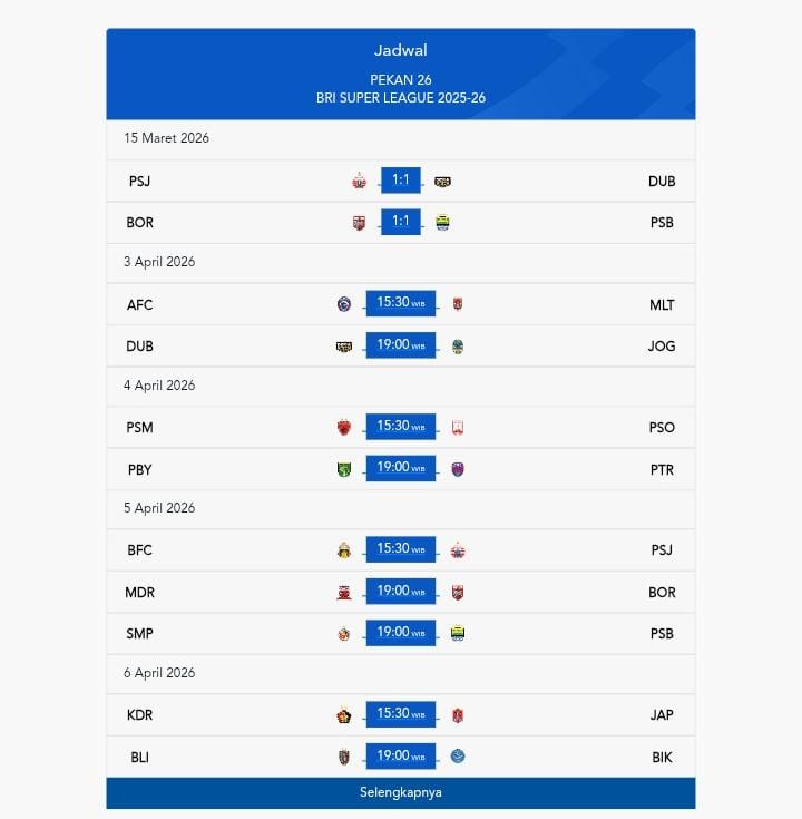 Dengan tensi kompetisi yang semakin meningkat, para pecinta sepak bola Tanah Air dipastikan akan disuguhi pertandingan-pertandingan menarik dalam lanjutan BRI Super League 2025–26 pekan ke-26.