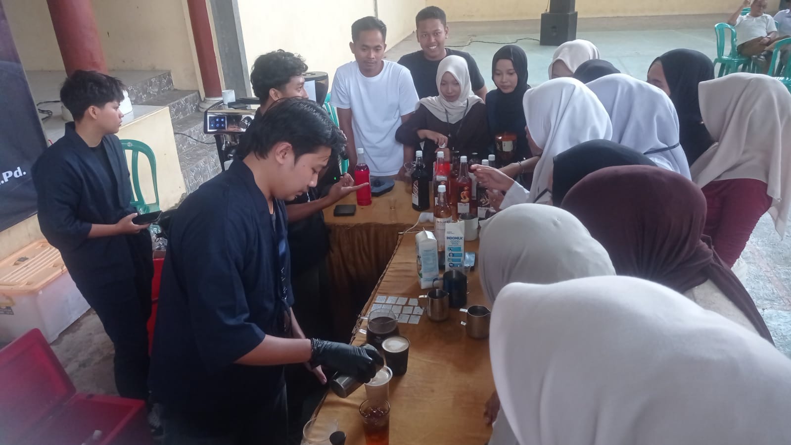 Praktik tidak hanya diperagakan oleh barista profesional, tetapi para siswa juga diberi kesempatan untuk mencoba secara langsung.