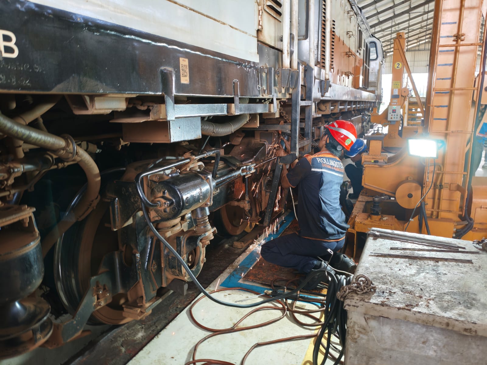 Perawatan mencakup rangka bawah kereta, seperti bogie, roda, dan bantalan (bearing) agar seluruh sistem mekanik berfungsi sempurna.