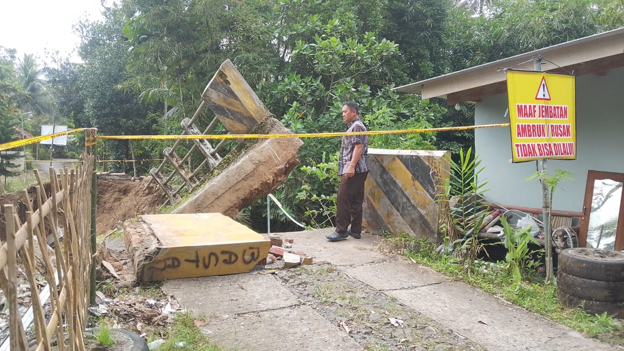 “Jembatan ini ya menjadi akses andalan warga, baik anak sekolah, orang mau ke lapangan, atau ke sawah,” kata warga setempat, Pariman.