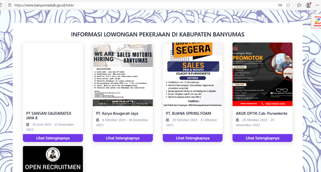 Dengan demikian, proses rekrutmen menjadi lebih mudah dan penyerapan tenaga kerja di Banyumas serta sekitarnya dapat meningkat.