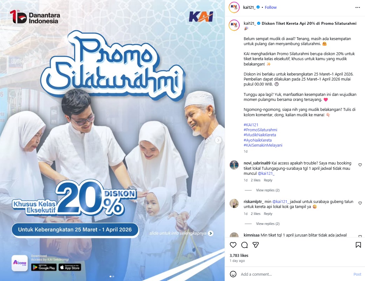 Selain itu, faktor kenyamanan, ketepatan waktu, dan fasilitas yang terus meningkat menjadi nilai tambah bagi layanan kereta api di Indonesia.