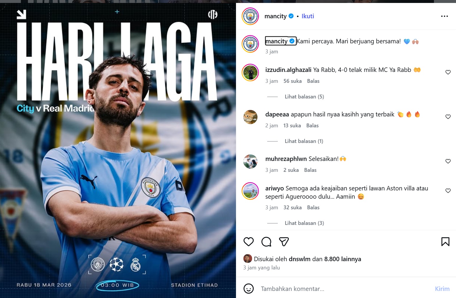 Dengan agregat tertinggal tiga gol, Manchester City membutuhkan kemenangan besar untuk membalikkan keadaan. Sementara Real Madrid hanya perlu menjaga konsistensi untuk mengamankan tiket ke babak berikutnya.