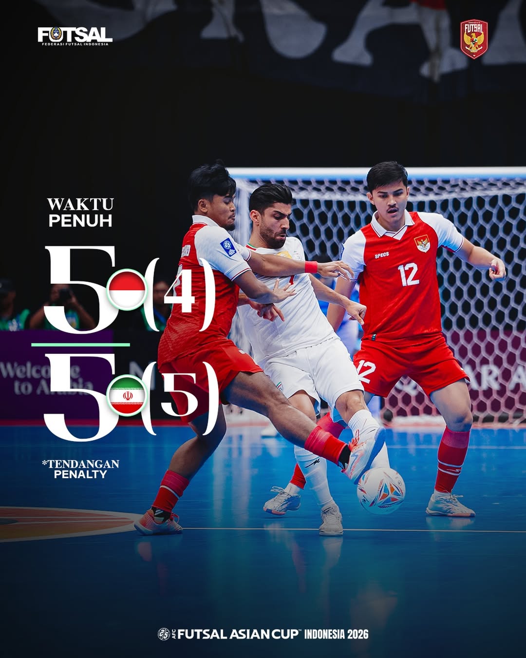 SERAYUNEWS-Indonesia kalah dari Iran di final Piala Asia Futsal 2026. Pada laga yang berlangsung di Indonesia Arena tersebut, Indonesia kalah adu penalti, Sabtu (7/2/2026) malam.