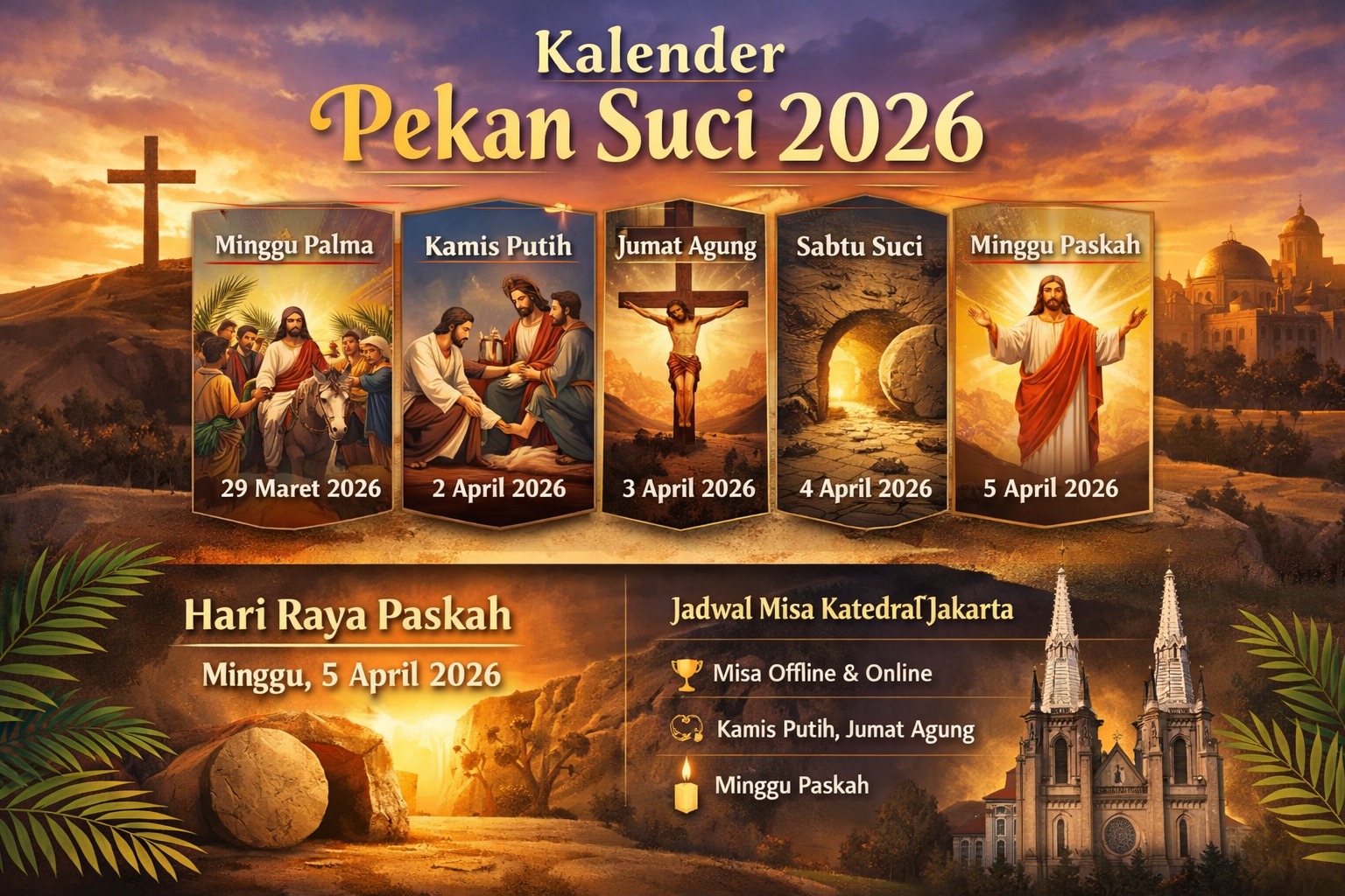 Melansir berbagai sumber, berikut Serayunews sajikan ulasan mengenai Kalender Pekan Suci 2026 lengkap dan detail, berisi Jadwal Misa Katedral Jakarta, tanggal Paskah, hingga Makna Tri Hari Suci: