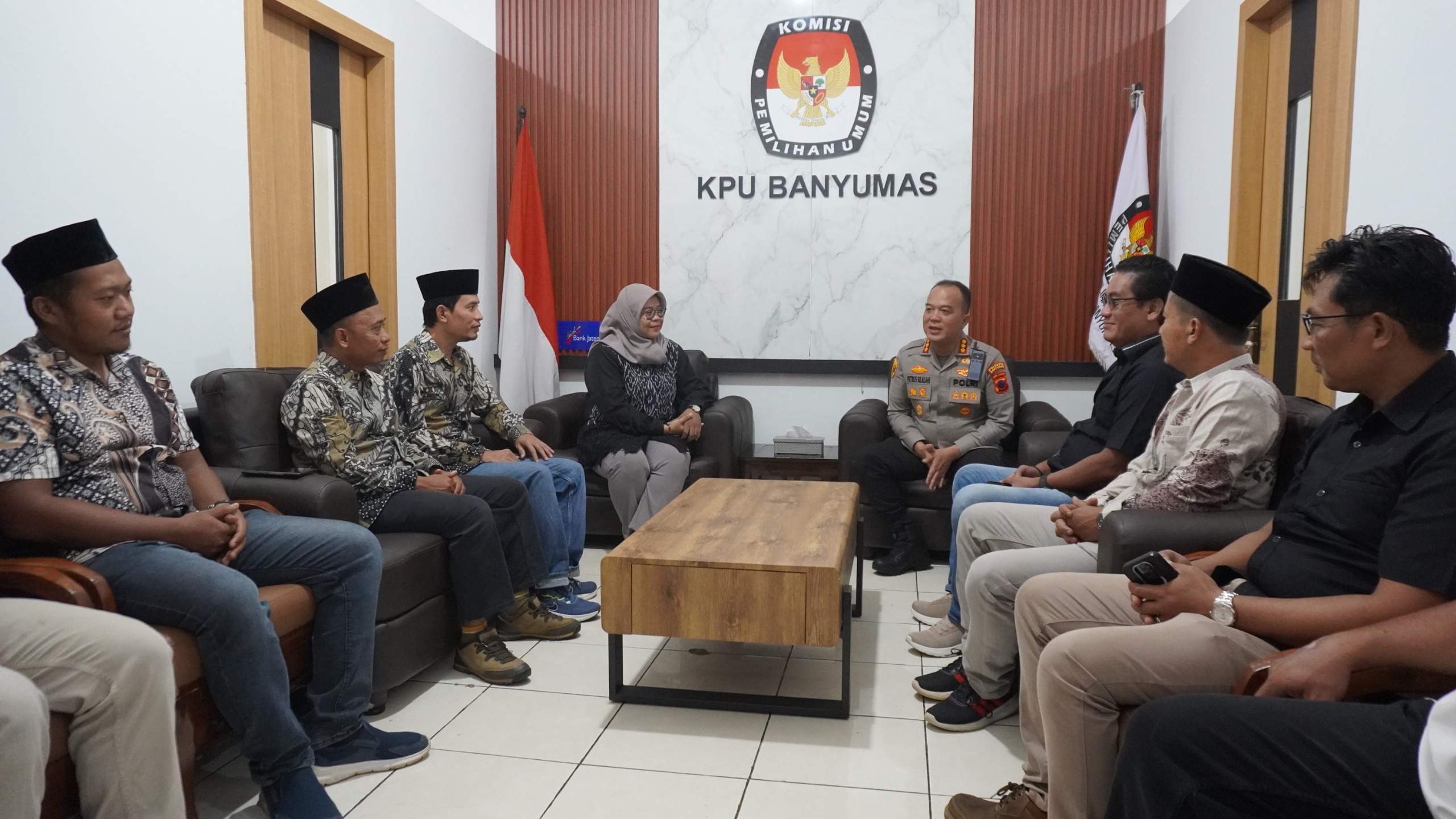 Kehadiran Kapolresta Banyumas, Petrus Parningotan Silalahi, disambut langsung Ketua KPU Banyumas, Rofingatun Khasanah, didampingi para komisioner serta staf sekretariat.