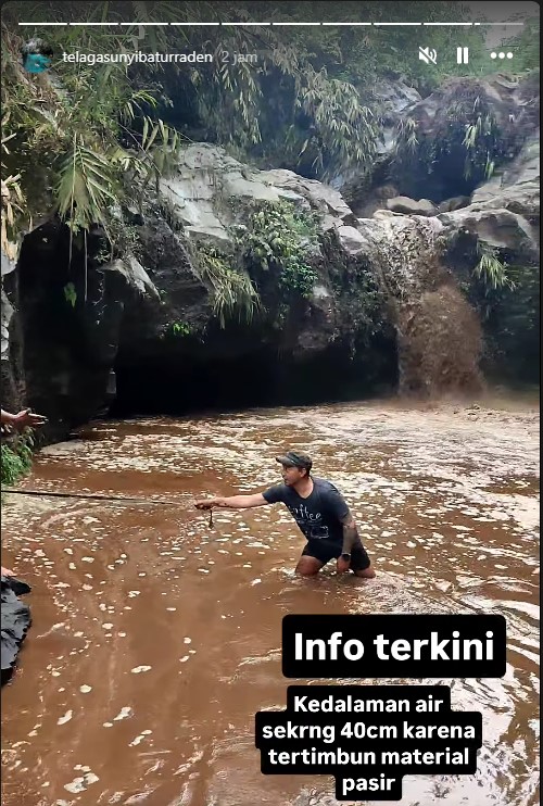 “Mohon maaf buat para pengunjung Telaga Sunyi sementara wisata alam kami ditutup beberapa waktu dikarenakan dampak dari hujan angin semalam Jumat 23/01/2026,” ujar pihak pengelola resmi Telaga Sunyi melalui akun media sosial @telagasunyibaturraden.