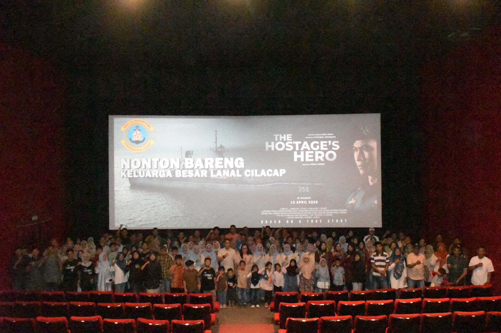SERAYUNEWS – Bertempat di Bioskop Dakota Cilacap, keluarga besar Pangkalan TNI Angkatan Laut (Lanal) Cilacap melaksanakan kegiatan nonton bareng (nobar) film The Hostage’s Hero 2026, Senin (13/04/2026) petang.