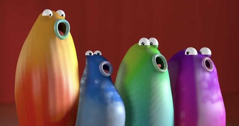 Empat blob lucu yang tampil di layar mewakili empat jenis suara dalam opera, yakni soprano, alto, tenor, dan bass.