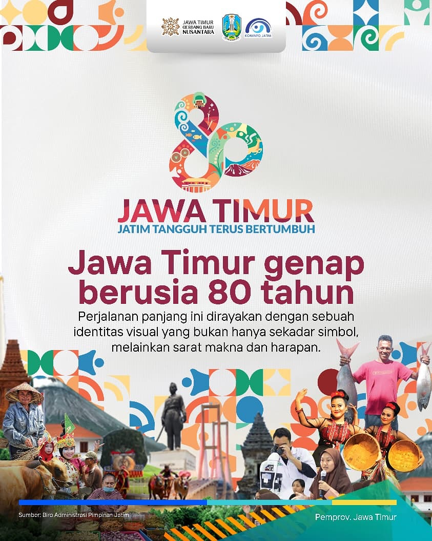 Tahun ini, Pemerintah Provinsi Jawa Timur telah merilis logo resmi Hari Jadi ke-80 yang tidak hanya berfungsi sebagai identitas visual perayaan, tetapi juga memiliki makna filosofis yang mendalam.
